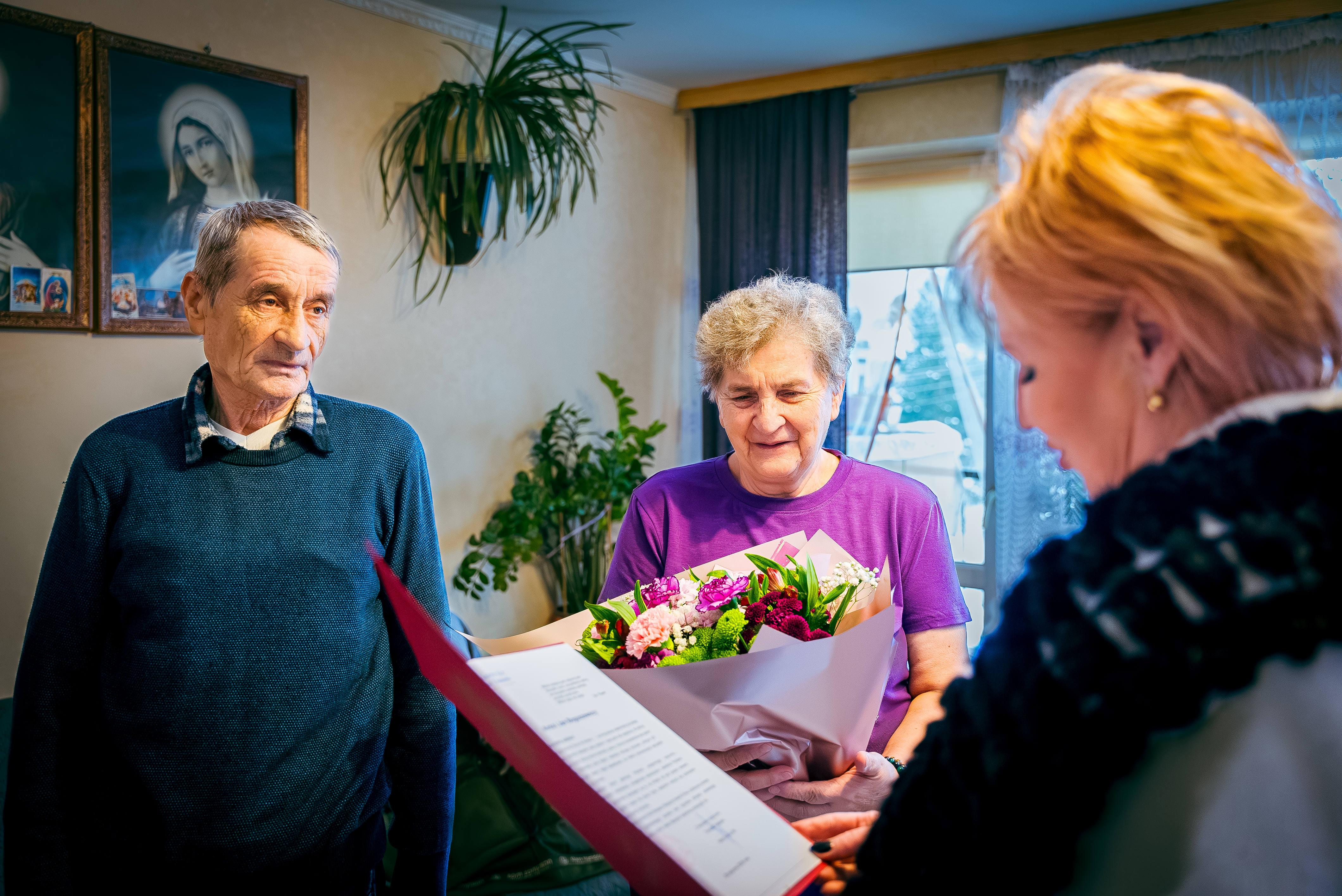 Aby w imieniu władz samorządowych oraz całej społeczności złożyć najserdeczniejsze gratulacje, jubilatów odwiedziła Zastępca Wójta Gminy Ełk Bożena Wołyniec. Wizyta stanowiła wyraz najwyższego szacunku dla pięknego, trwającego pół wieku związku, który jest przykładem wierności, oddania i siły lokalnych rodzinnych tradycji.